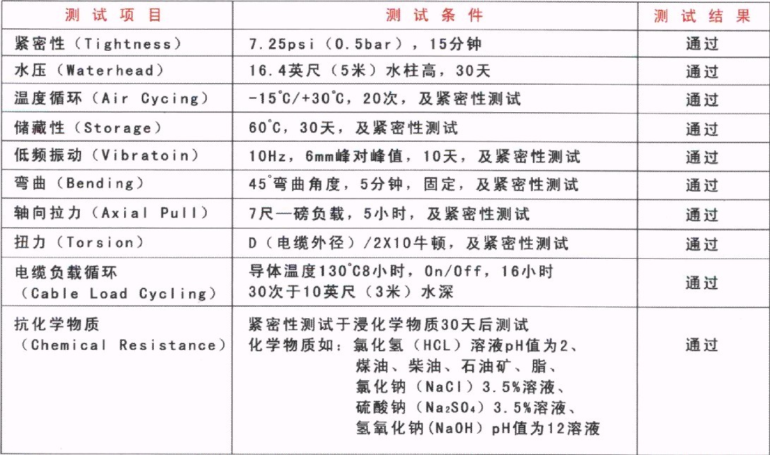 模擬3米水壓和導體溫度高達90℃環(huán)境下的老化情況 |