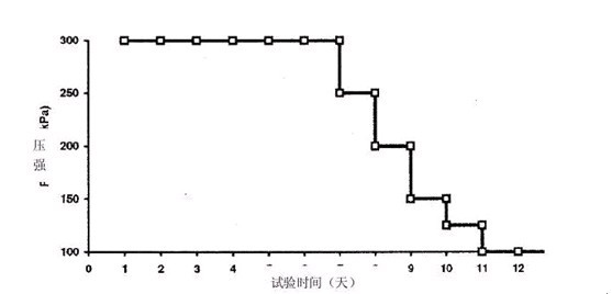 在100KPa內袋壓強下,繼續(xù)對樣品進行負荷循環(huán)24小時。然后,將管中的水換成空氣。保持管中的氣壓處于30KPa(0.3巴),在100KPa內袋壓強下,再繼續(xù)對樣品進行負載循環(huán)24小時。