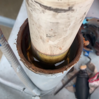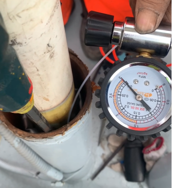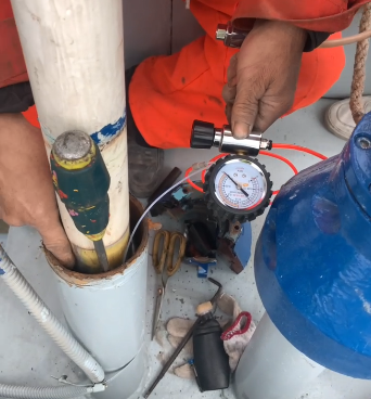安裝后密封效果測試:對豎拉桿套管內倒水,未見漏水氣泡和水位下降,密封有效。見下圖