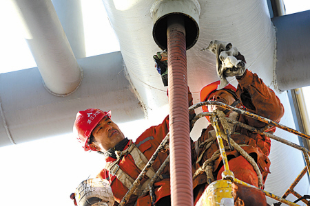 寧波鄞州大橋在2013年8月的大修中做過一次的完整的吊桿錨具防水防腐養(yǎng)護(hù)。本次養(yǎng)護(hù)對吊桿上下兩端錨具部位都進(jìn)行了徹底清洗,并重新涂抹和灌注防腐油脂。
