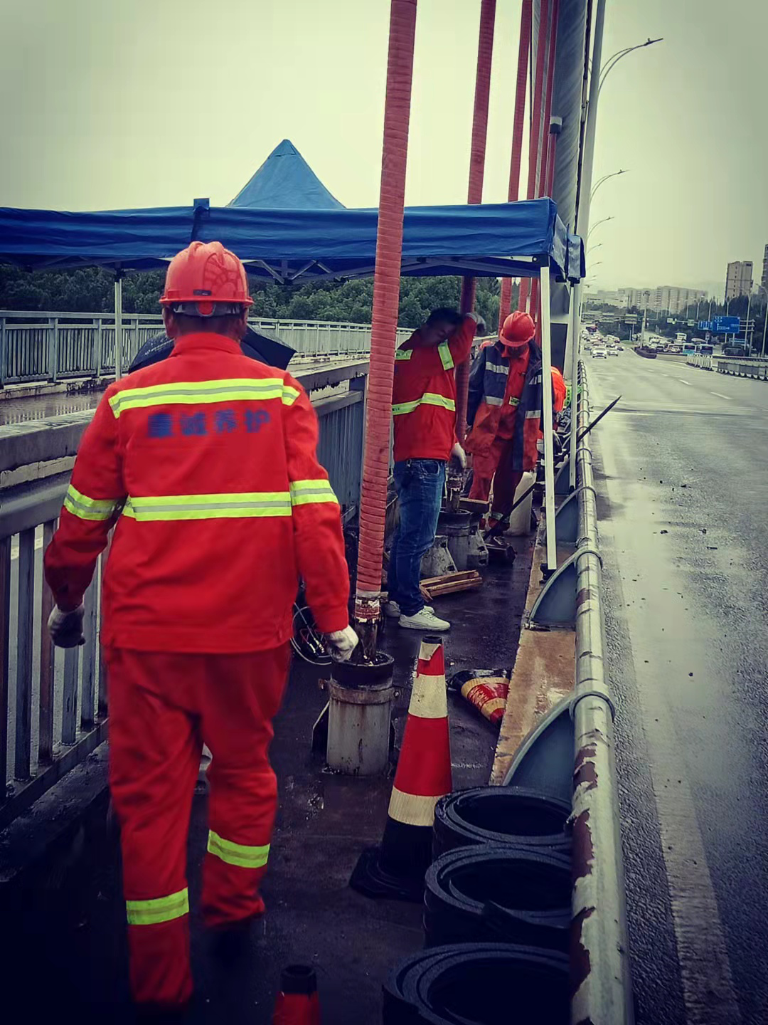 2021年10月,市政橋梁養(yǎng)護(hù)單位對寧波鄞州大橋吊桿錨具防水防腐進(jìn)行施工。本次針對吊桿錨具防水防腐,采用了株洲市完全科技有限公司生產(chǎn)的充氣型斜拉索導(dǎo)管防水裝置。在這種新型防水裝置安裝施工過程中,大橋業(yè)主單位和施工監(jiān)理單位領(lǐng)導(dǎo)到達(dá)現(xiàn)場觀摩,通過仔細(xì)查看安裝過程,和安裝后的灌水測試,充分認(rèn)可了充氣型斜拉索導(dǎo)管防水裝置對吊桿錨具防水防腐的有效性。