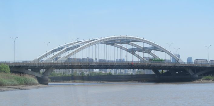 寧波鄞州大橋位于鄞州大道上,橫跨奉化江,全長510米,兩邊引橋各長175米。設(shè)計(jì)為雙向六車道,總寬68米,中間3跨,主橋構(gòu)造系中承式鋼筋混凝土系桿拱橋。