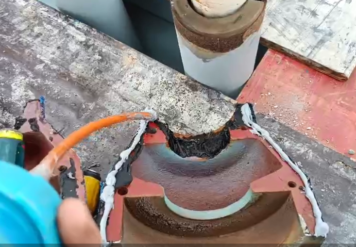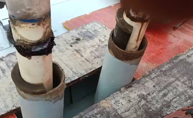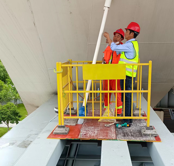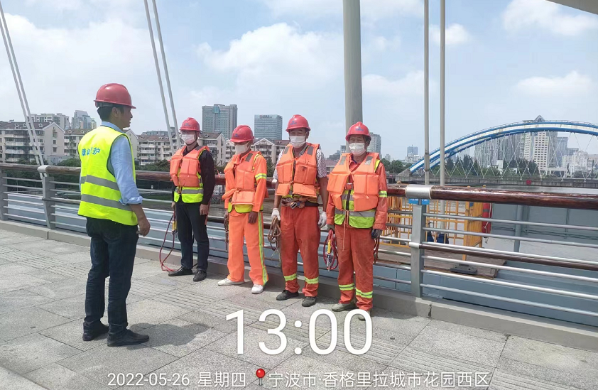 2022年5月底,株洲市完全科技有限公司派技術(shù)員協(xié)助寧波市政橋梁養(yǎng)護單位對澄浪橋44對豎吊索梁端預(yù)埋管進行防水防腐養(yǎng)護施工。