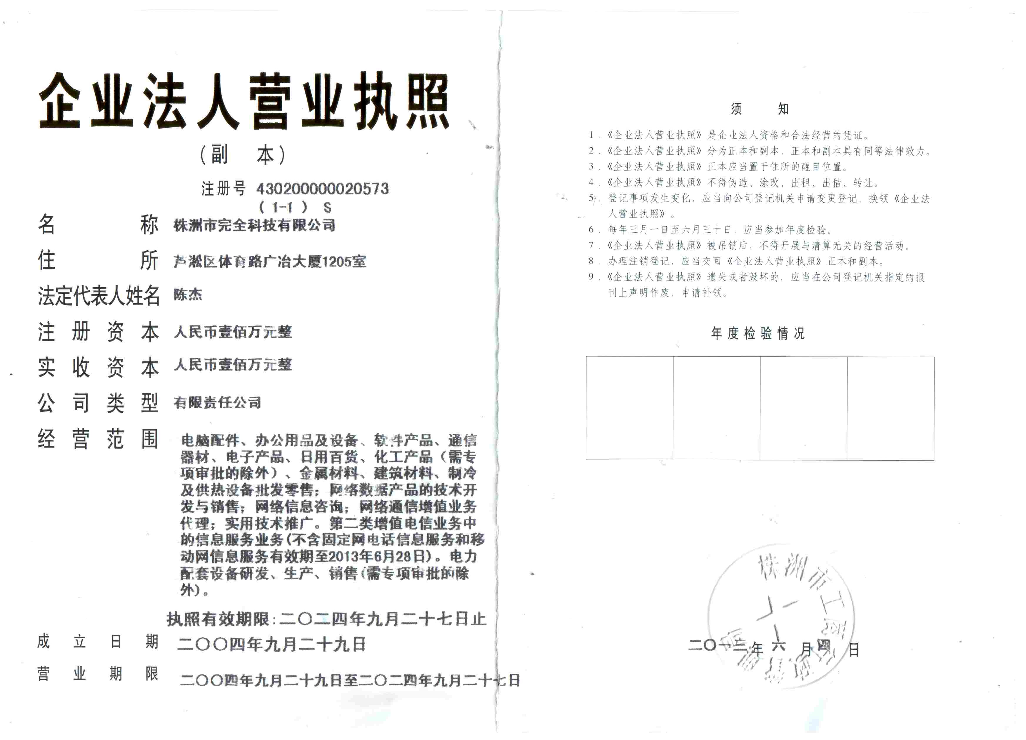 公司名稱變更之后的營業執照(變更日期:2013.06.04)
