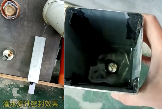 方形管道孔洞封堵效果灌水檢驗(yàn)結(jié)果:將管道樹立灌水,管道底部未見漏水,密封有效。
