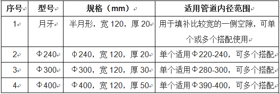 株洲市完全科技有限公司設計生產的變徑橡膠圈現有4個型號(見下表):