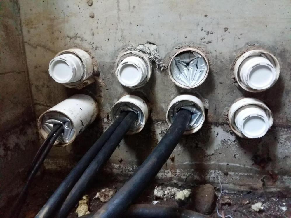 有人推薦使用充氣型電纜管道密封氣囊,說是價格不貴,只要幾十塊錢一個;密封氣囊安裝后內部氣壓可以對管孔空隙保持長久的膨脹擠壓力密封效果,就算是搖動電纜都不會漏水,密封性能特別好;再就是安裝過程比較干凈,不像水泥封堵搞得地面和手上臟兮兮的,封堵完電纜管孔還要花時間清理現場殘留物;最主要的是安裝快速,幾分鐘安裝一個,還可以帶水作業,安裝后馬上見效。還發了照片給我看效果(見下圖),大家也來評評,這種封堵方式好不好?