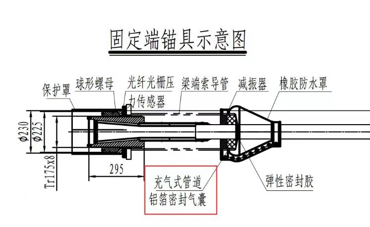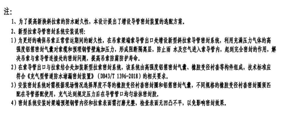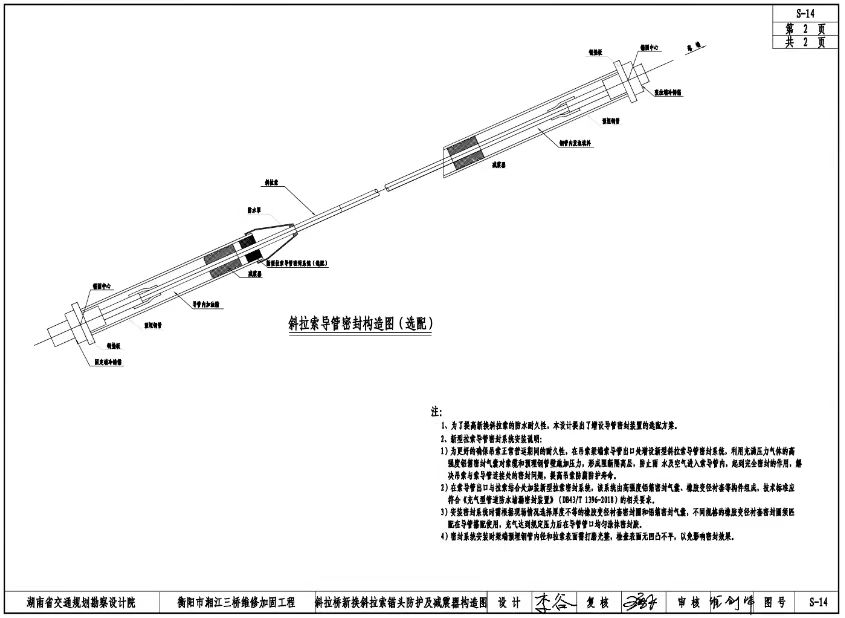 本次針對衡陽湘江三橋斜拉索導(dǎo)管密封問題,經(jīng)湖南省交通規(guī)劃勘察設(shè)計院研究審定,將采用株洲市完全科技有限公司(簡稱“完全科技”)生產(chǎn)的充氣型斜拉索導(dǎo)管密封系統(tǒng),并完成設(shè)計圖方案。